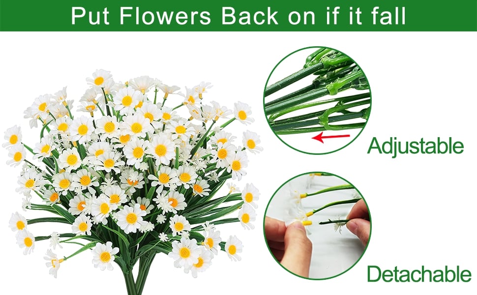 ★ Osvěžte si svůj život - 8 svazků umělých margarét, podívejte se na tyto realistické falešné plastové margaréty v zářivých barvách, zářící a třpytící se, odpočiňte si náladu a zázrak. Dobře vyrobené a živě zbarvené vypadají realisticky.